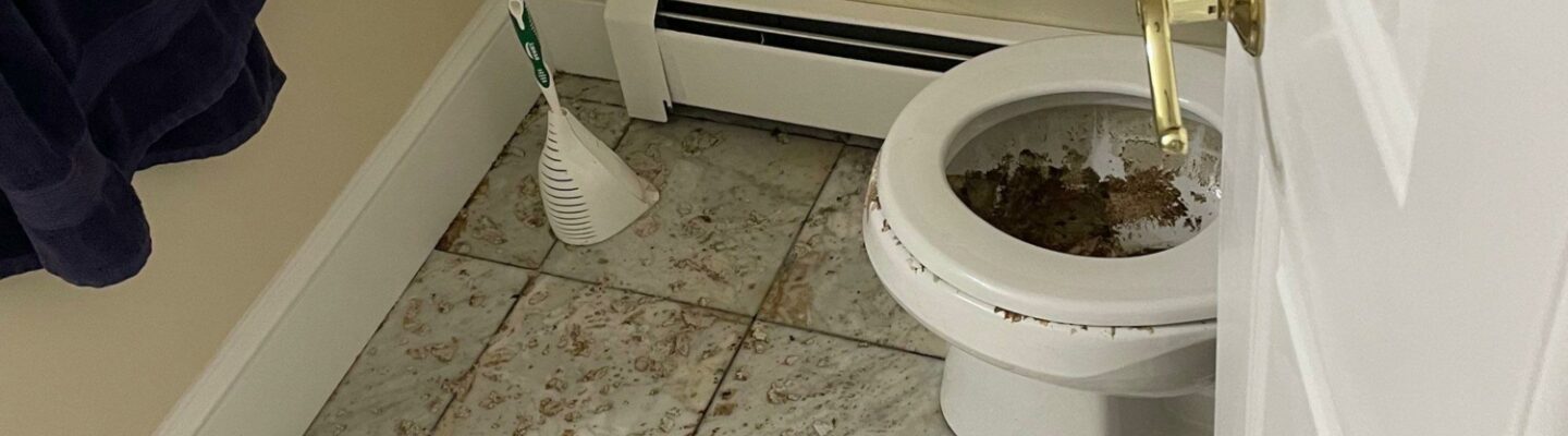 - Main Sewer Blockage – the main lines can also get blocked- in fact during the early months of the 2020 pandemic, many city sewer lines were overwhelmed by disposable disinfecting wipes being flushed. When the main lines are blocked, sewage can back up through toilets, shower drains, and sinks.